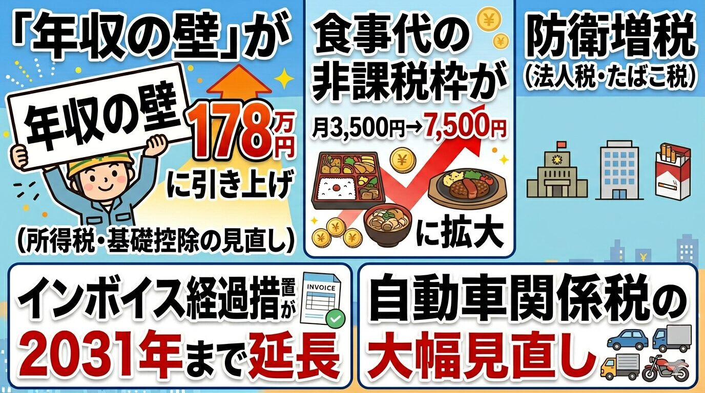 「年収の壁」引き上げ・防衛増税・インボイス経過措置延長など、