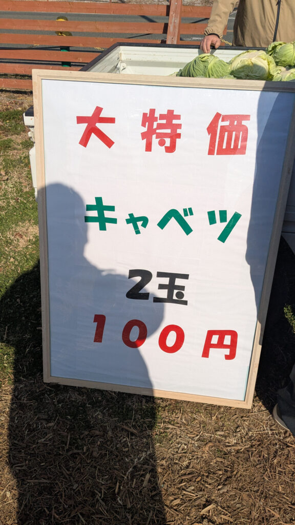 大特価キャベツ2玉100円