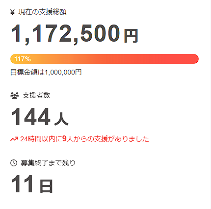 祝第一弾目標金額達成‼